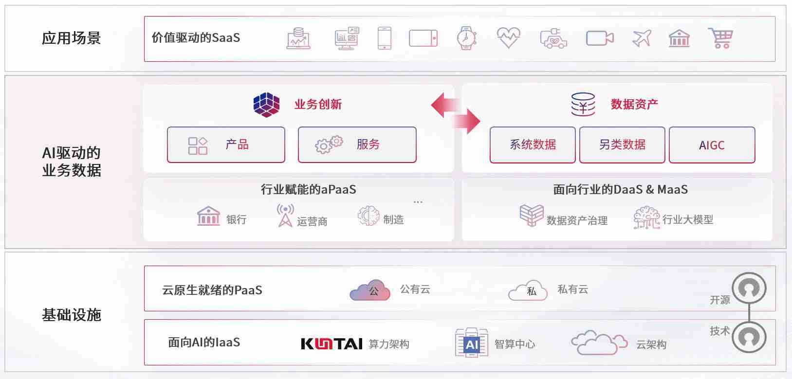 数字时代,,,围绕企业数字化转型的关键要素,,亚星代理平台数码开创性的提出数云融合战略和技术体系框架,,,,着力在云原生、、、数字原生、、AI原生和信创产业上架构产品和服务能力,,,为处在不同数字化转型阶段的快消零售、、、、汽车、、、金融、、、、医疗、、政企、、、教育、、运营商等行业客户提供泛在的敏捷IT能力和融合的数据驱动能力,,构建跨界融合创新的数字业务场景和新业务模式,,,助力企业级客户建立面向未来的核心能力和竞争优势,,,,全面推动社会的数字化、、、智能化转型升级。。。。